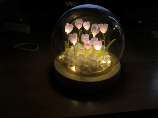 Queda muy bonito montado, aunque es un poco complicado de montar, dos leds por cada flor y cristales blancos de sobra, me ha sorprendido gratamente