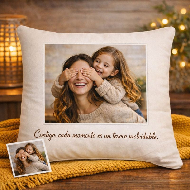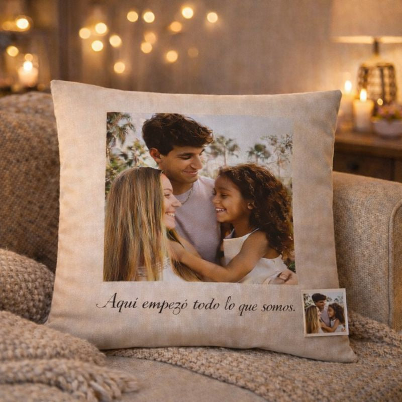 Trabajamos con impresión de alta calidad y revisamos cada cojín antes del envío para que recibas un producto cuidado, bonito y fiel a tu foto.