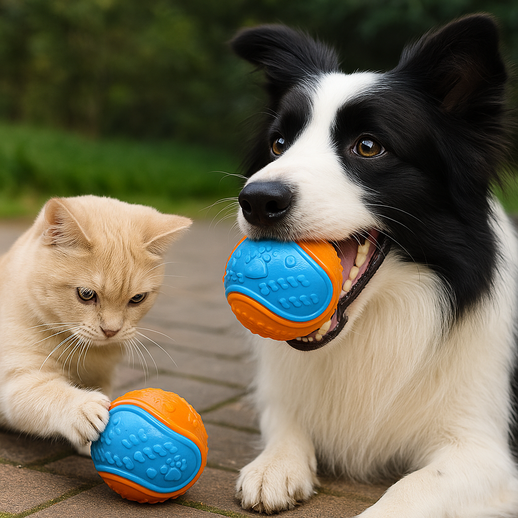 Fabricada con TPR (caucho termoplástico) de alta resistencia, DentaBall™ es segura, duradera y suave con sus dientes, capaz de resistir incluso las mordidas más fuertes.