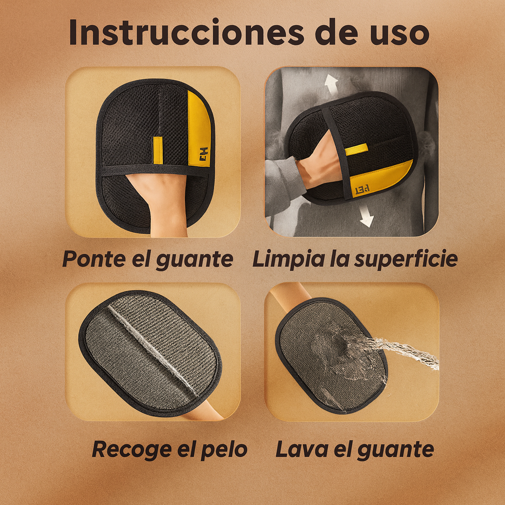 Por eso te presentamos PetGlove™, el guante mágico que elimina el pelo suelto mientras mimas a tu mascota.